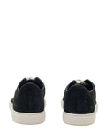 Low-top grained leather sneakers in black. Lace-up closure Padded tongue and collar Signature series stamp...