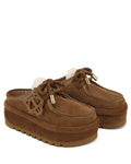Introducing the Blizzard slip-on from Naked Wolfe, a backless shoe that combines luxury and modern comfort. Crafted from premium suede, it features a cozy wool lining and a leather sock for exceptional comfort. The shoe boasts a 60mm heel height and a chunky super light tread for an elevated look. Cord round laces with branded metal lace tips add a touch of luxury to any casual look, while an embossed logo and a big Wolfe head key chain enhance its distinctive design. Each pair has a hand crafted dirty finish. Perfect for making a statement, the Blizzard slip-on is a must-have addition to your footwear collection