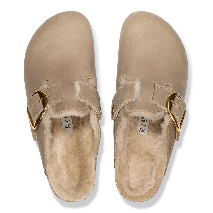 W Boston Big Buckle Shearling Oiled Leather Tobacco
