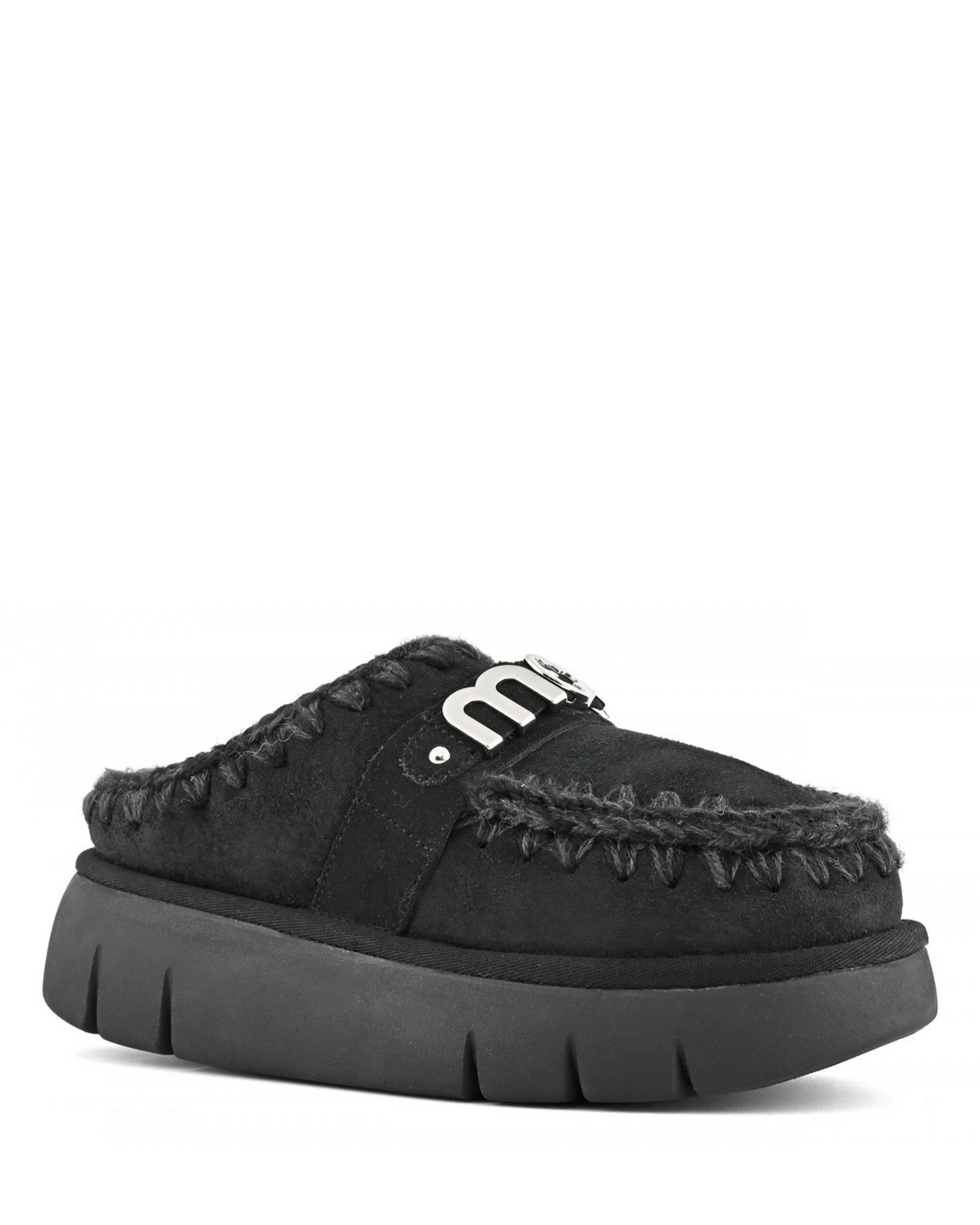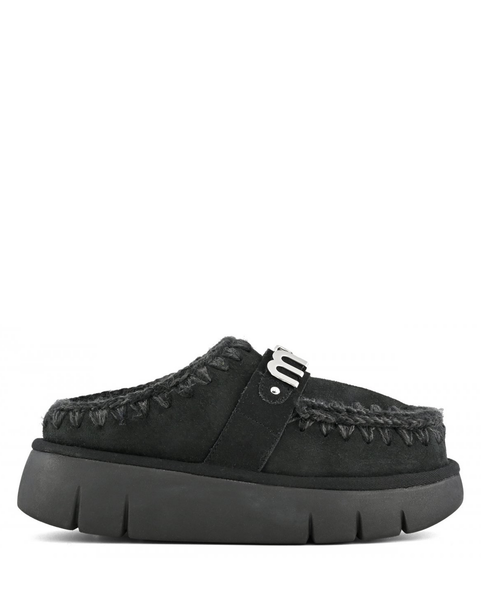 - Chunky platform sole with deep grooves provides cushioned steps and reliable traction