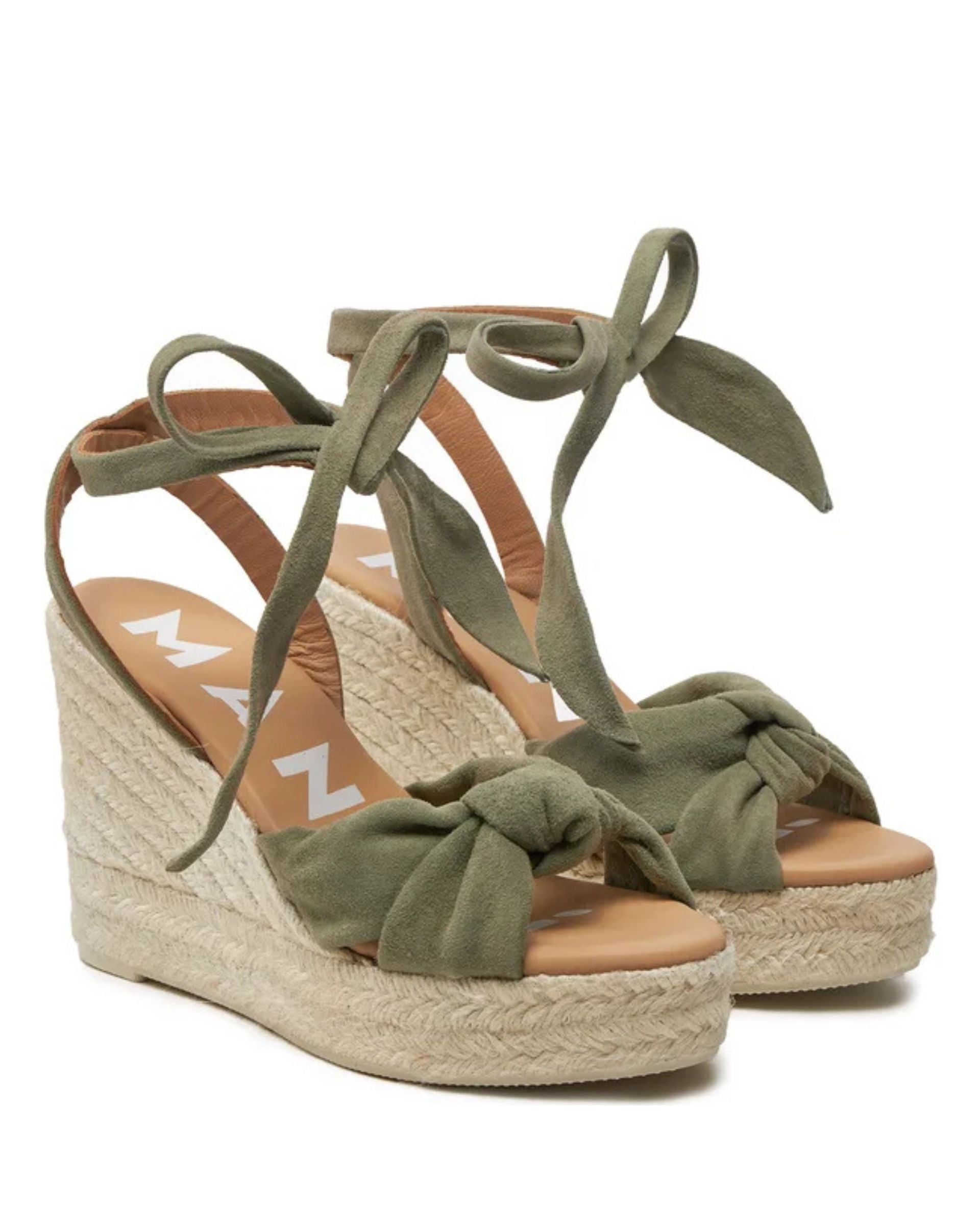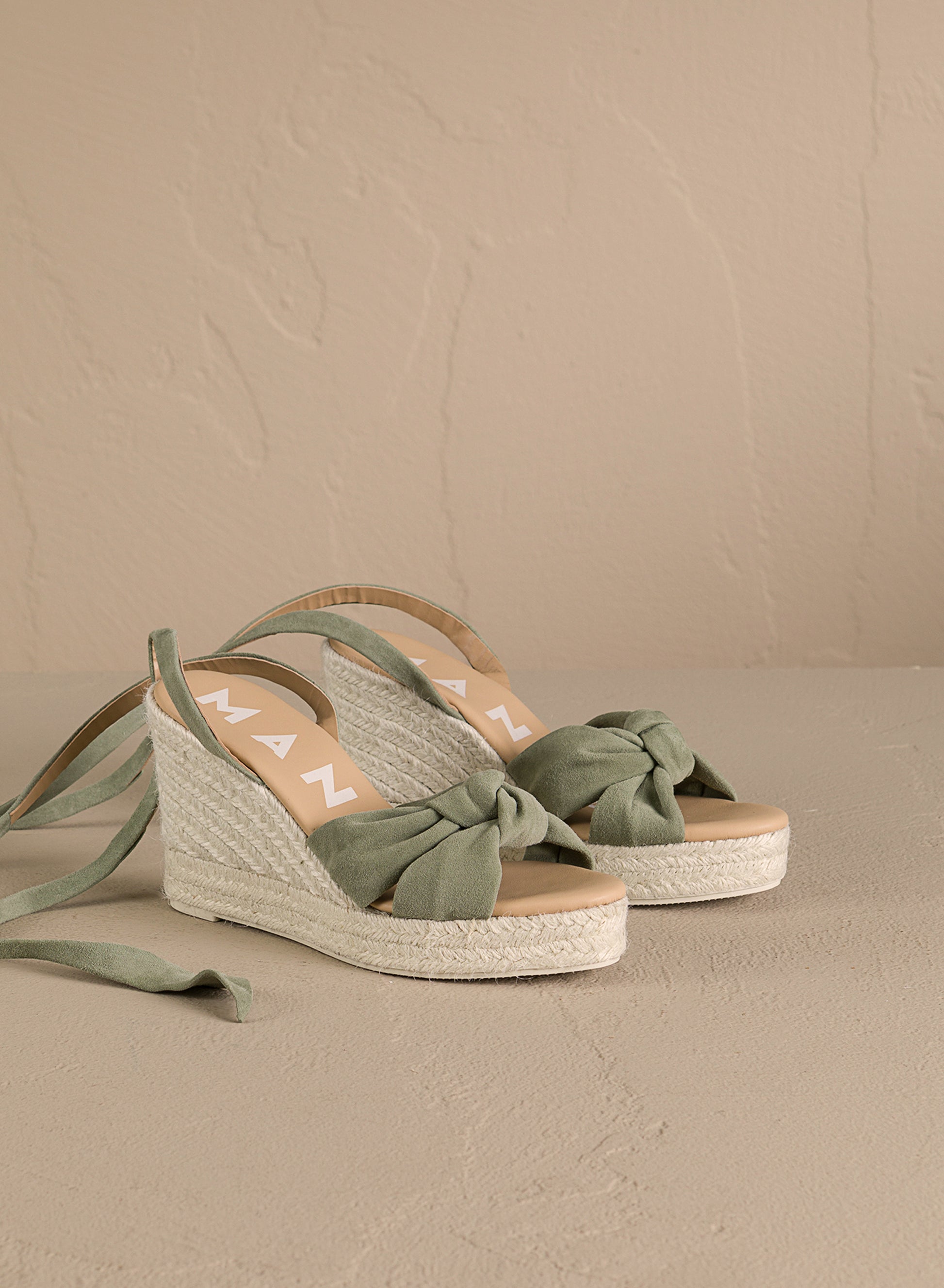 Green Suede Wedge Espadrille with Knot