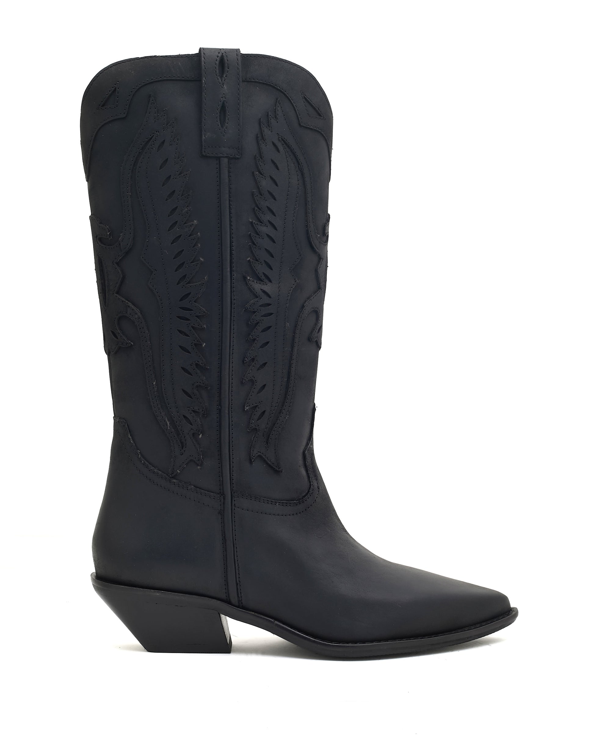 Intricate Cutout Detailing: Features sophisticated tone-on-tone cutout and stitch patterns along the mid-calf shaft, referencing classic cowboy motifs while retaining a chic, refined sensibility.