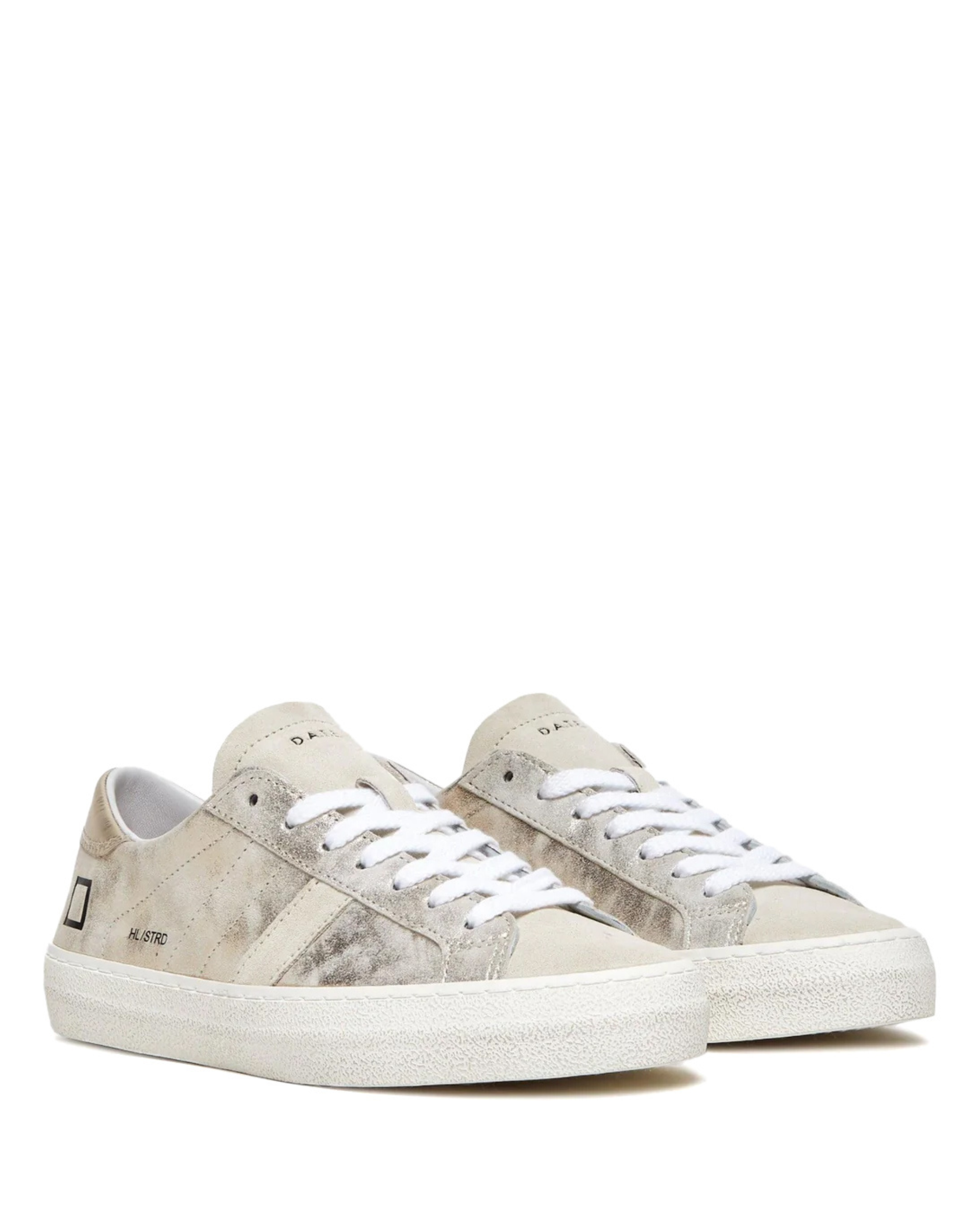 Introducing the W Hill Low Stardust Platinum Leather sneakers, a stunning addition to the D.A.T.E. collection that seamlessly blends style and comfort. Crafted in Italy with high-quality leather, these sneakers are designed for all seasons, making them a versatile choice for any wardrobe. The shimmering platinum leather not only adds a unique touch but also ensures durability and easy maintenance.
