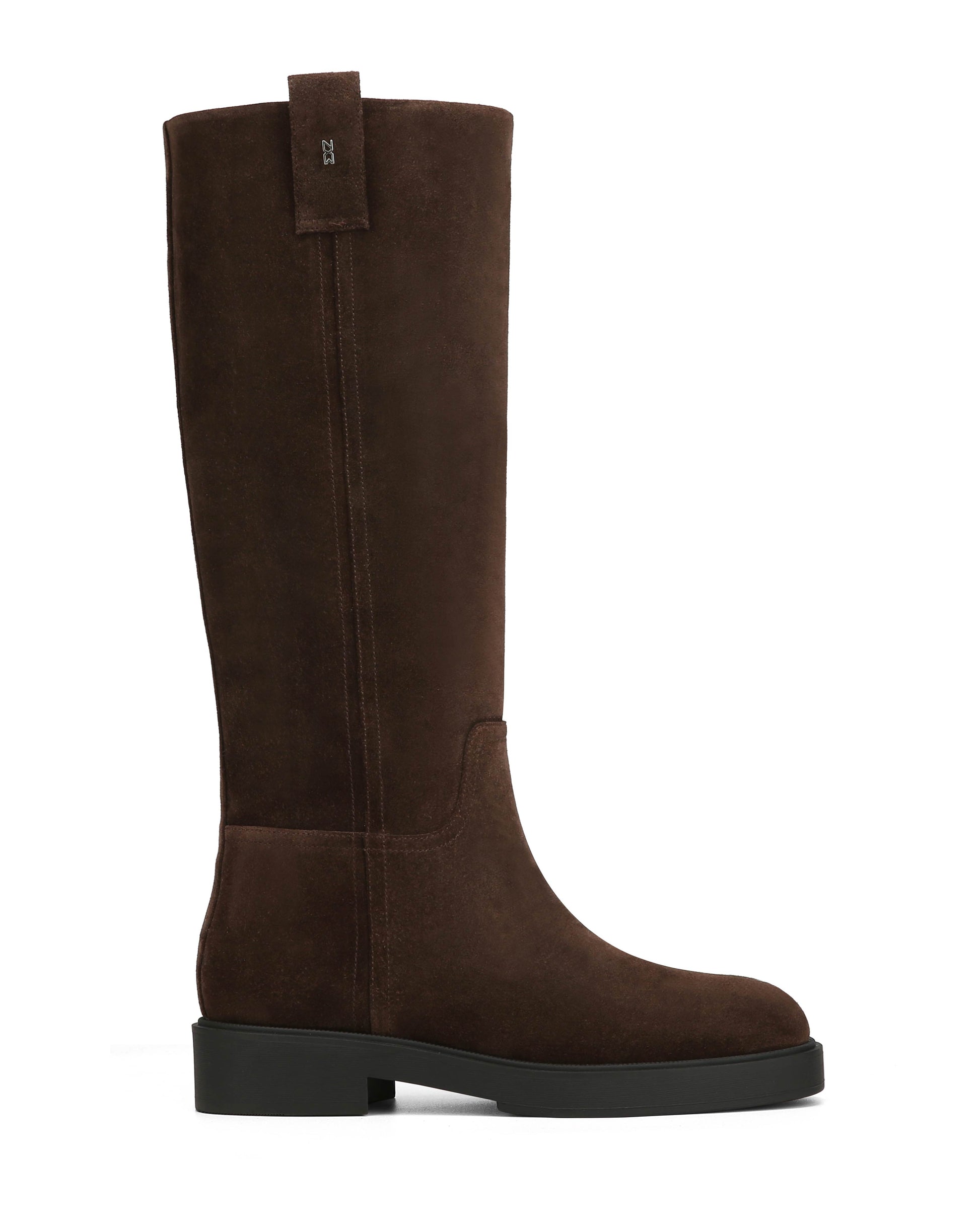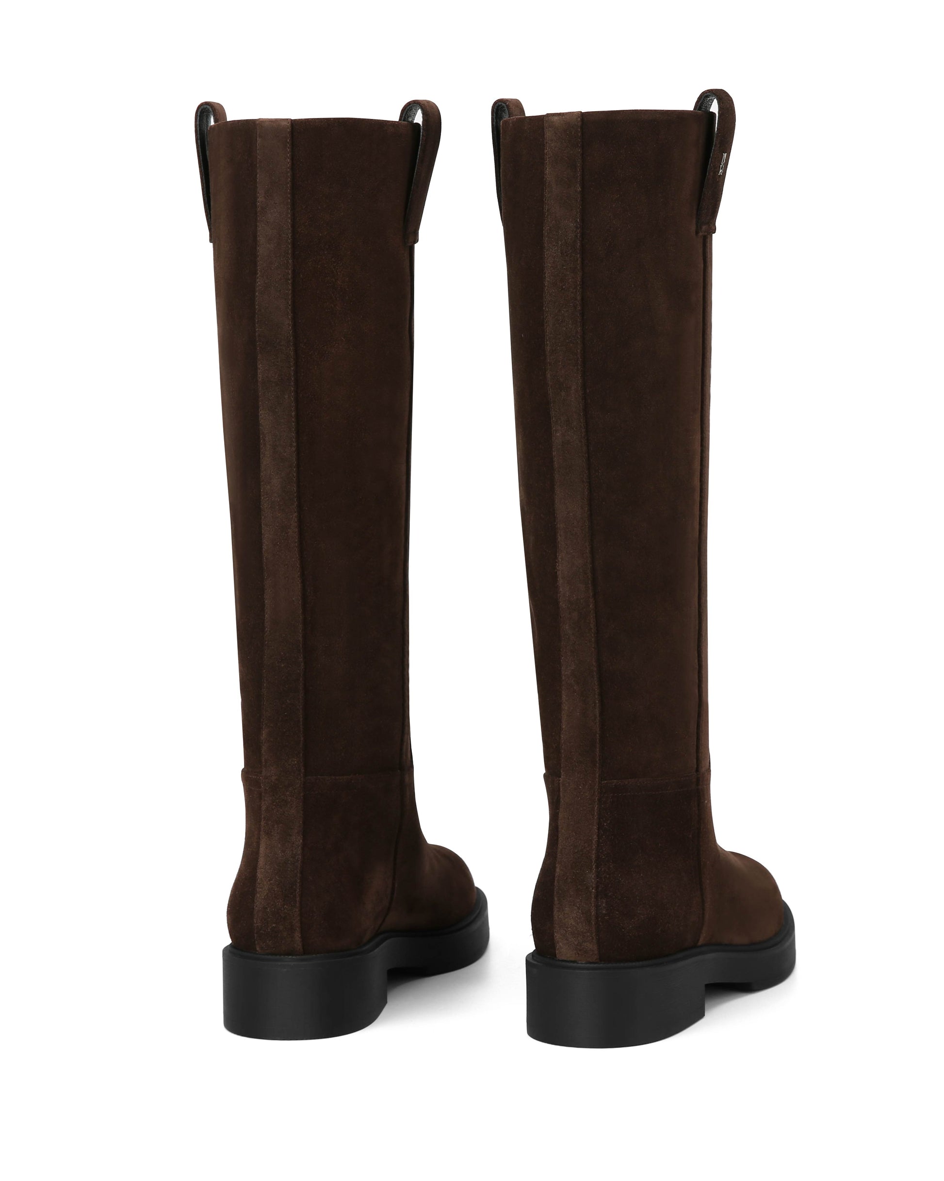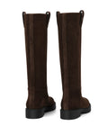 - Knee-high silhouette in rich brown suede with clean, streamlined stitching for a timeless look.