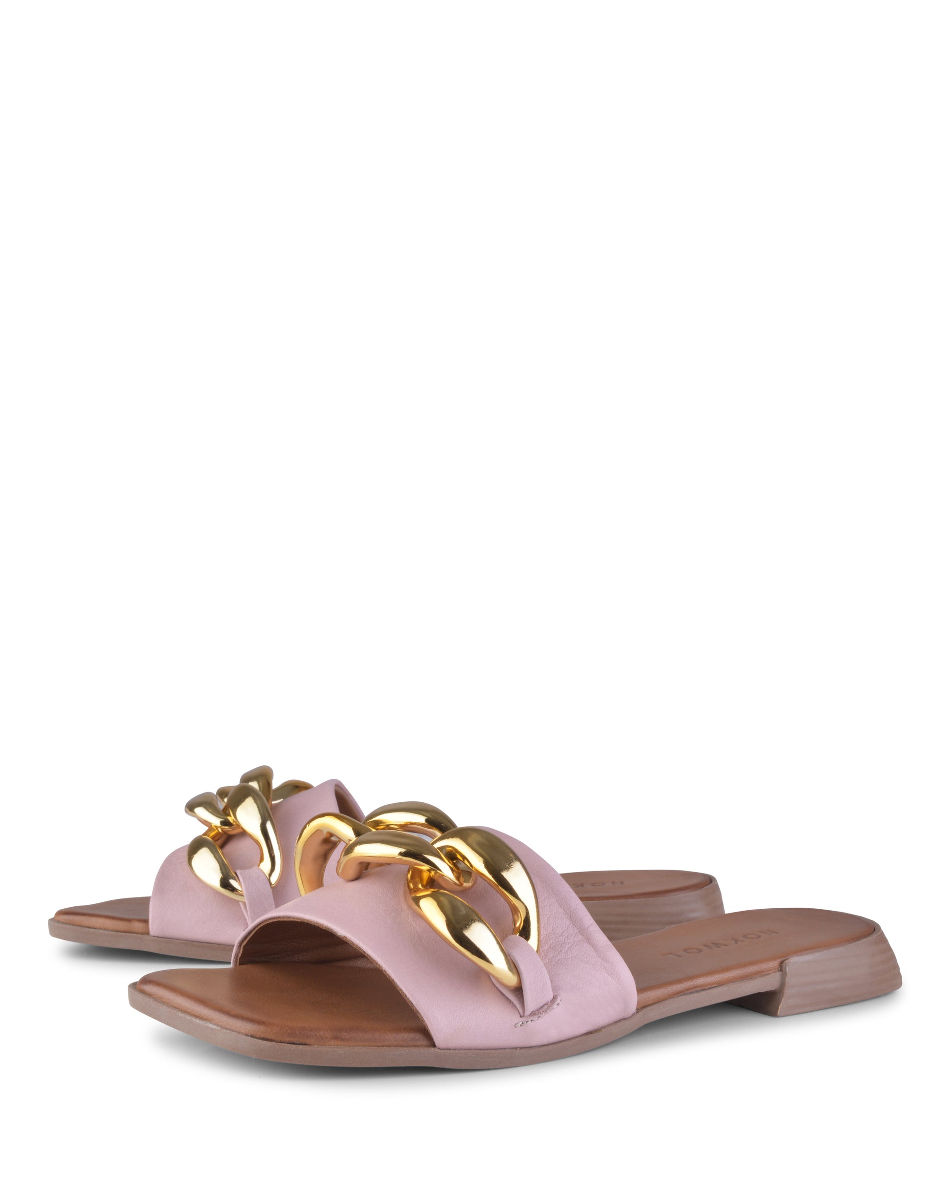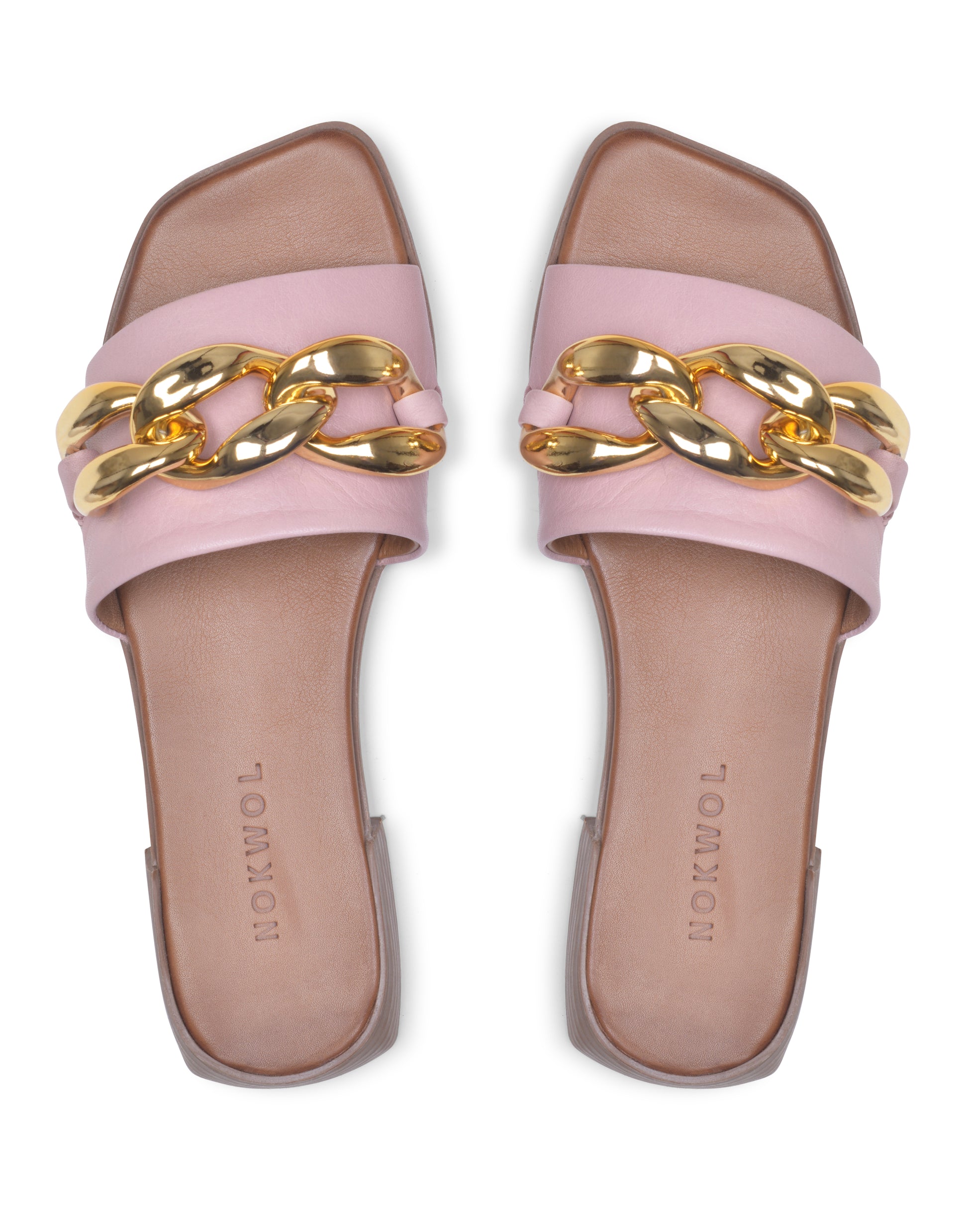 Constructed on a mini stacked block heel, mule style Kate is adorned with an oversized chain over the vamp strap. This style encapsulates elegance and fashion and will ensure you are walking through summer in style.