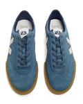 Suede is the underside of leather, sanded to give it a soft and smooth feel. It comes from farms in the Rio Grande do Sul region and is tanned in Brazil without harmful or prohibited chemicals. VEJA uses dyes that meet regulations and prioritizes responsible water use during the tanning process. This suede is then coated with PFC-free water-repellent oils to shield the sneakers from light rain.