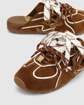 Admire, a backless option of our best selling sneaker Adored. Equipped with dual two tone flat lace and round cord lace, it ensures a secure fit and streamlined wear. Its upper, made from high quality durable suede upper, mesh lining and leather footbed, delivers both enhanced resilience and a distinctive textured aesthetic, making it ideal for everyday use.