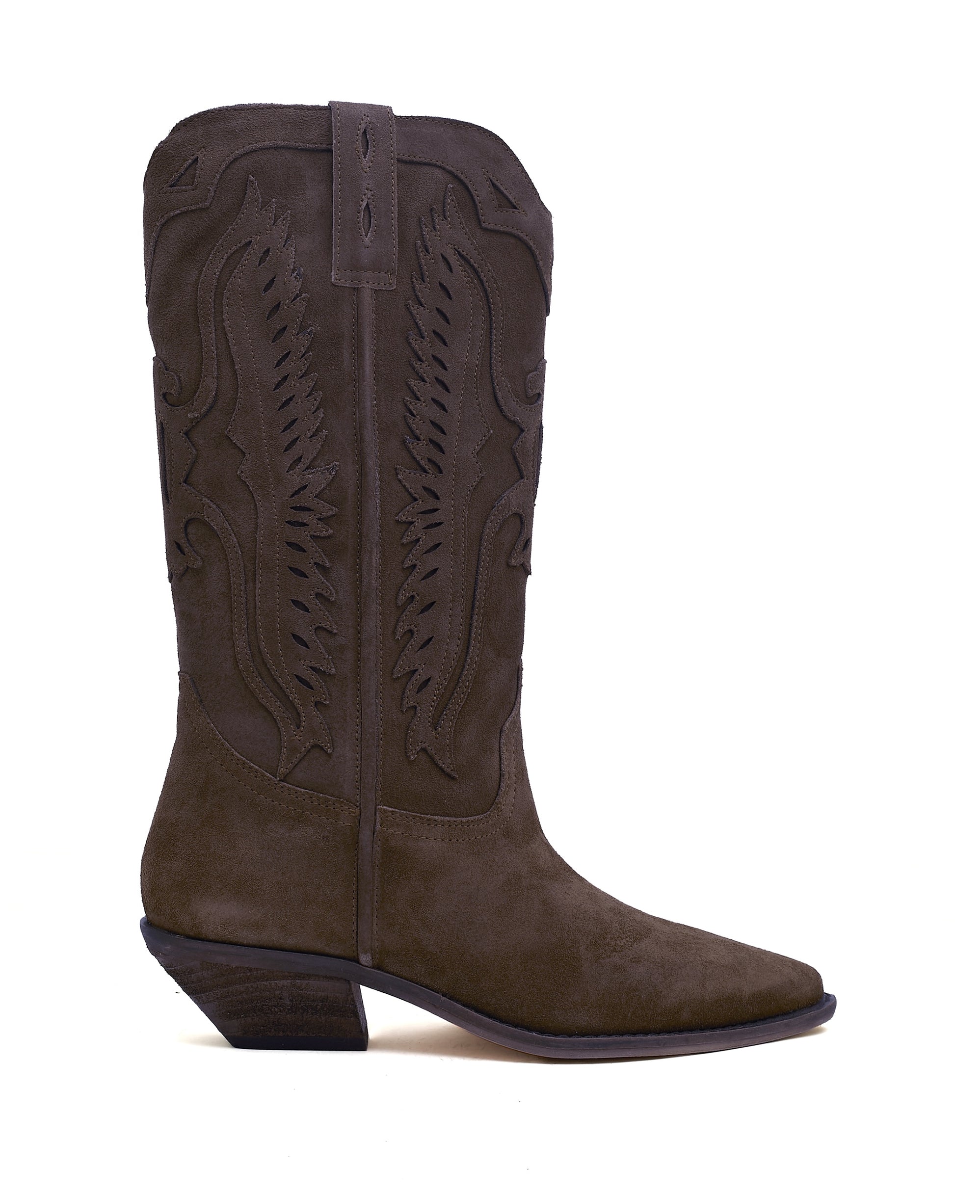 Intricate Cutout Detailing: Features sophisticated tone-on-tone cutout and stitch patterns along the mid-calf shaft, referencing classic cowboy motifs while retaining a chic, refined sensibility.