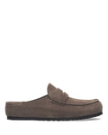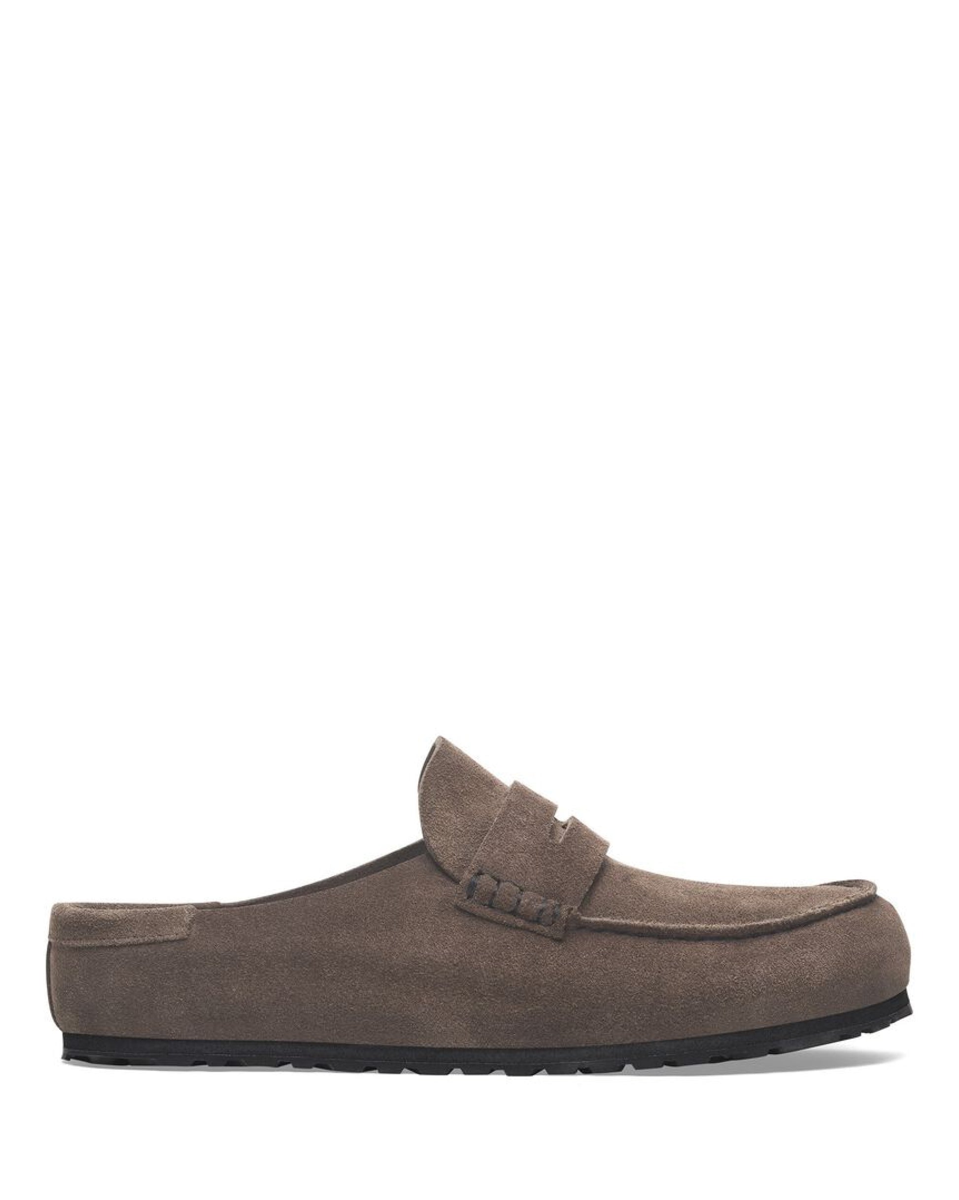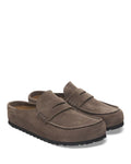 The BIRKENSTOCK Naples Wrapped is the closed version of the popular semi-open Buckley clog. The moccasin style with striking stitching lends this sandal a distinctive and masculine appearance. Thanks to its two components, the sole promotes a firm and comfy footing. It comprises a cushioning midsole made from EVA and an outsole made from genuine rubber. Its natural design is down to the upper made from especially soft suede, which hugs the foot like a second skin.