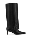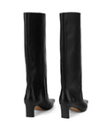 Cut from quality leather or suede with a softly structured shaft, this knee-high boot brings together minimalism and drama in equal measure. The elongated, pointed, square toe and mid-height heel strike a perfect balance between polish and power. A subtle slouch adds movement and ease, while the signature Nokwol stainless steel pin on the heel marks it with quiet confidence. Finished with a smooth leather footbed, leather and textile lining, and a sleek resin outsole, Nice is your go-to for elevated everyday - or a bold night out.