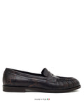 Classic Penny Loafer Silhouette: Features the traditional saddle strap and a slightly gathered, apron-stitched toe box for a refined, timeless profile.